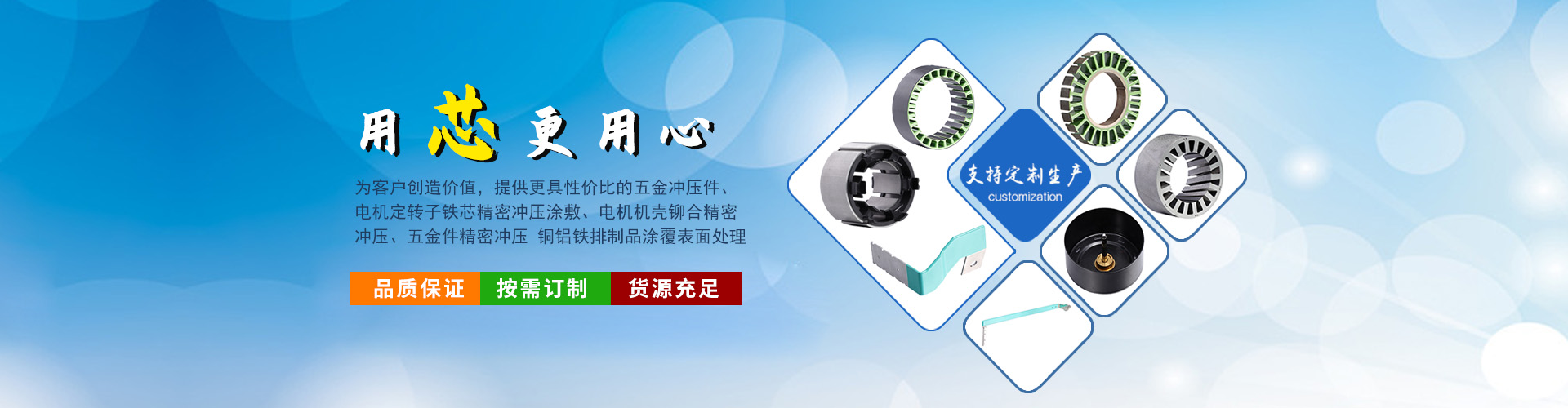 五金沖壓件、電機定轉子鐵芯精密沖壓涂敷、電機機殼鉚合精密沖壓、五金件精密沖壓